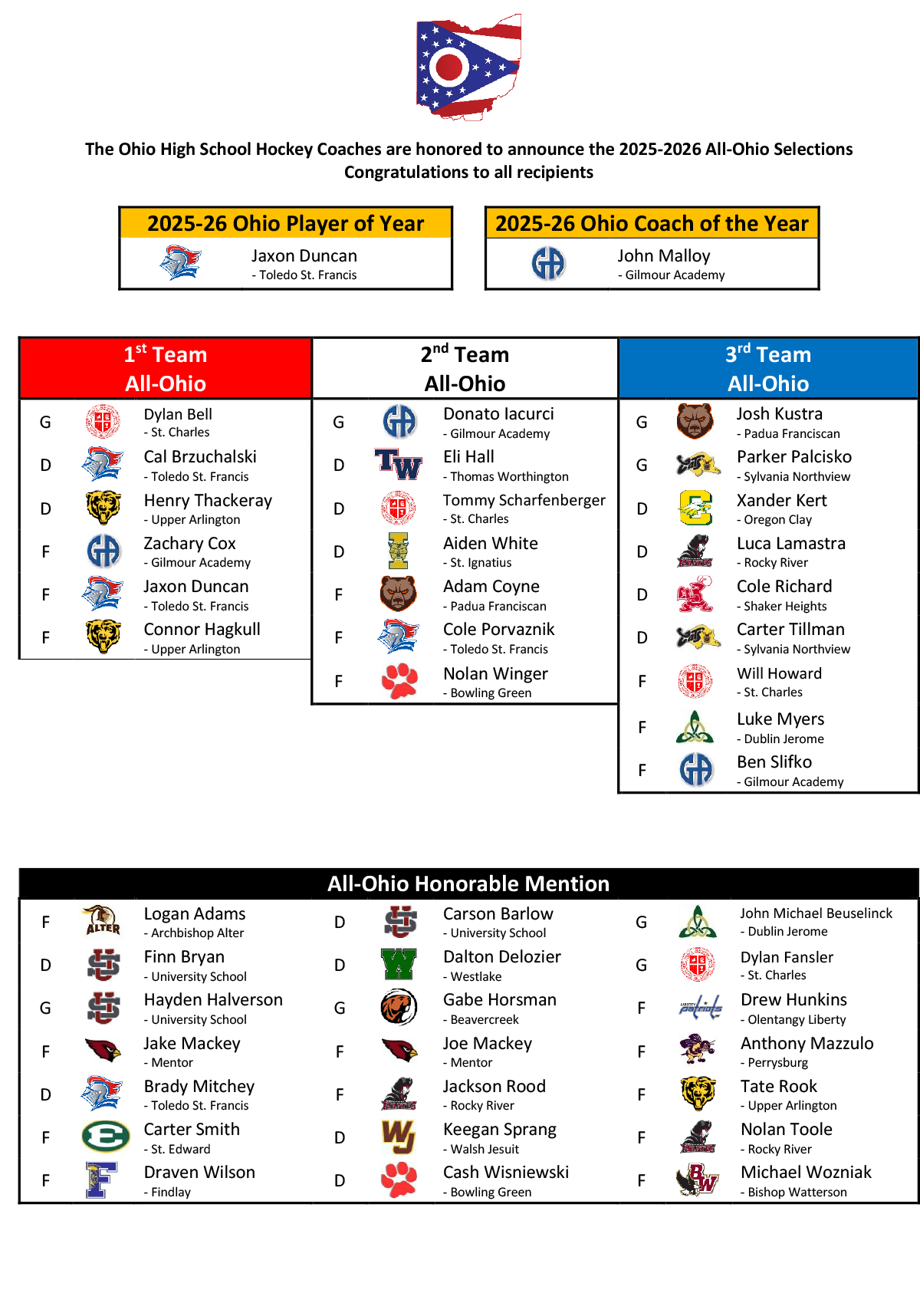 2025 - 2026 All-Ohio Teams