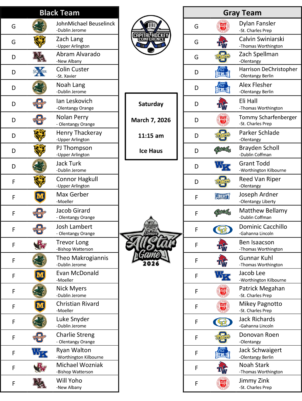 2026 Senior All-Star Game Saturday March 7 - 11:15 AM - Ice Haus